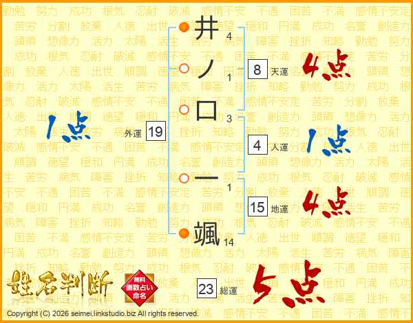 井ノ口一颯さんの総運は23画の5点!