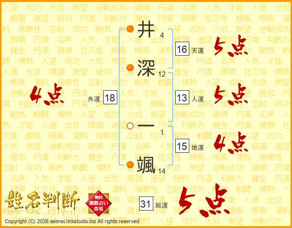井深一颯さんの総運は31画の5点!
