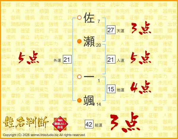 佐瀬一颯さんの人運は21画の5点!