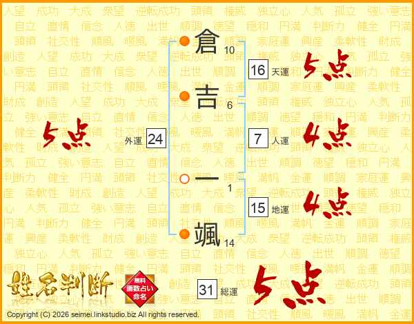 倉吉一颯さんの総運は31画の5点!