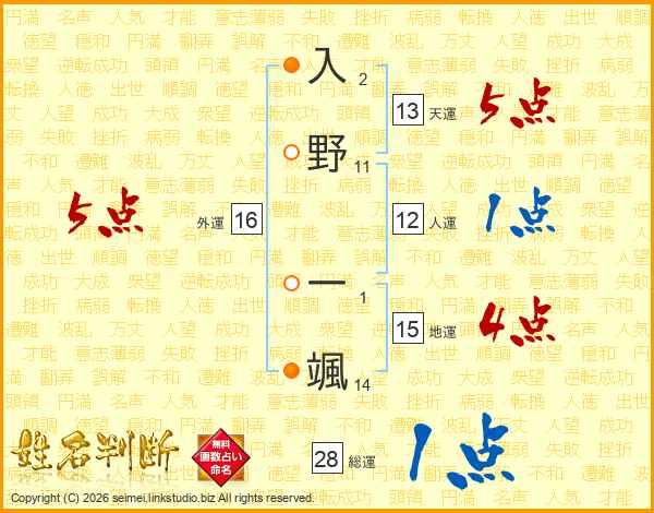 入野一颯さんの総運は28画の1点!