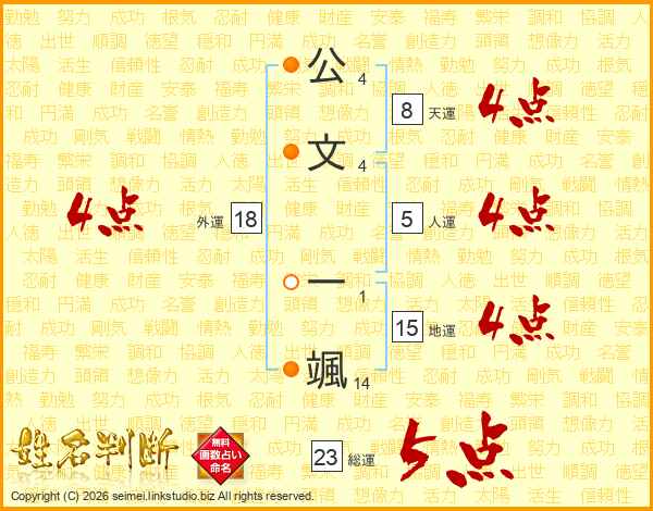公文一颯さんの外運は18画の4点!