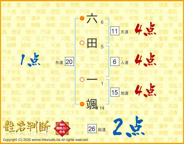 六田一颯さんの天運は11画の4点!