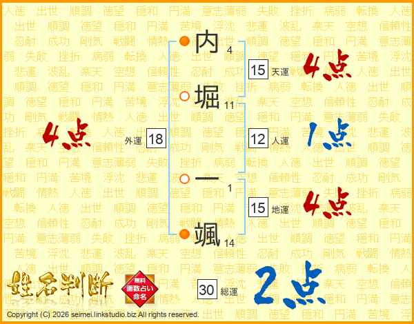 内堀一颯さんの総運は30画の2点!