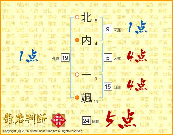 北内一颯さんの総運は24画の5点!