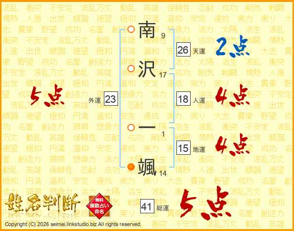南沢一颯さんの総運は41画の5点!
