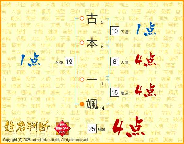 古本一颯さんの総運は25画の4点!