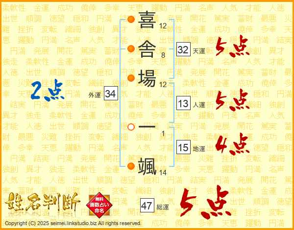 喜舎場一颯さんの総運は47画の5点!