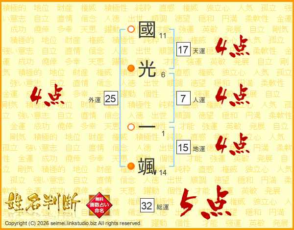 國光一颯さんの総運は32画の5点!
