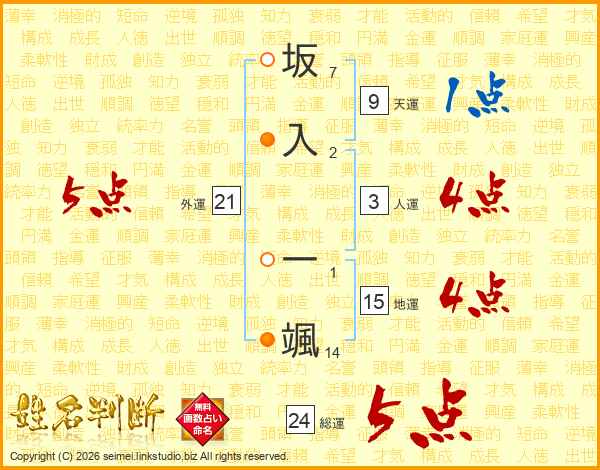 坂入一颯さんの外運は21画の5点!