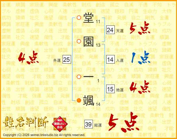 堂園一颯さんの総運は39画の5点!