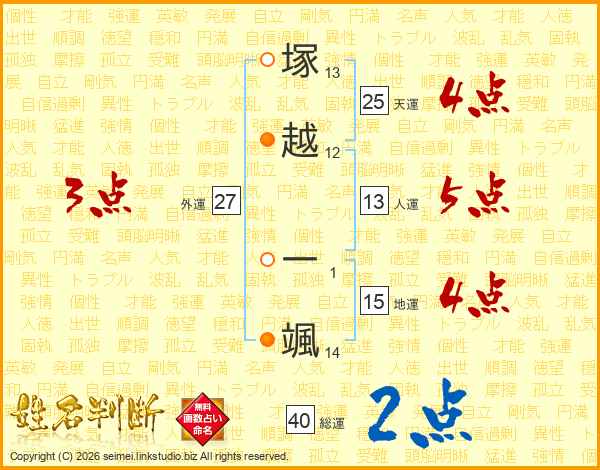 塚越一颯さんの人運は13画の5点!