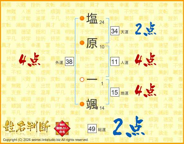 塩原一颯さんの総運は49画の2点!