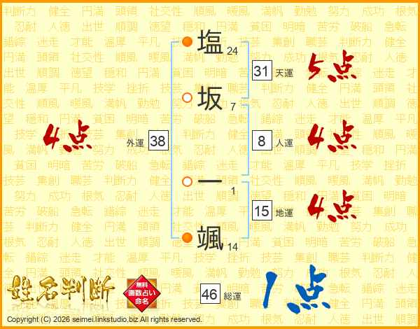 塩坂一颯さんの外運は38画の4点!
