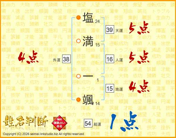 塩満一颯さんの総運は54画の1点!