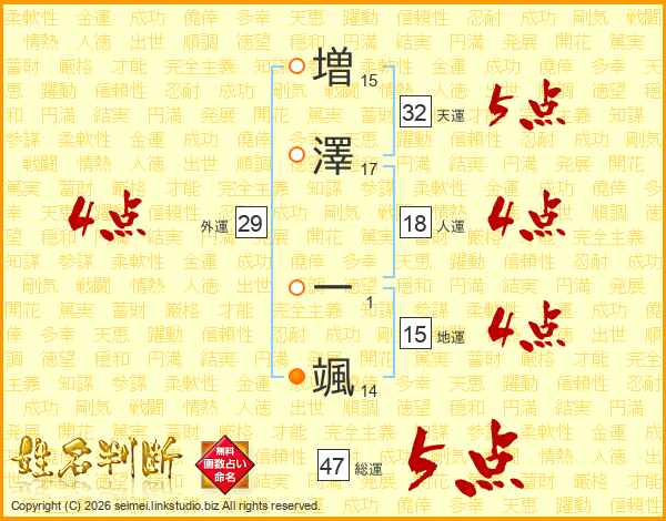 増(15画)澤(17画) 一(1画)颯(14画)