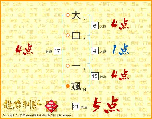 大口一颯さんの総運は21画の5点!