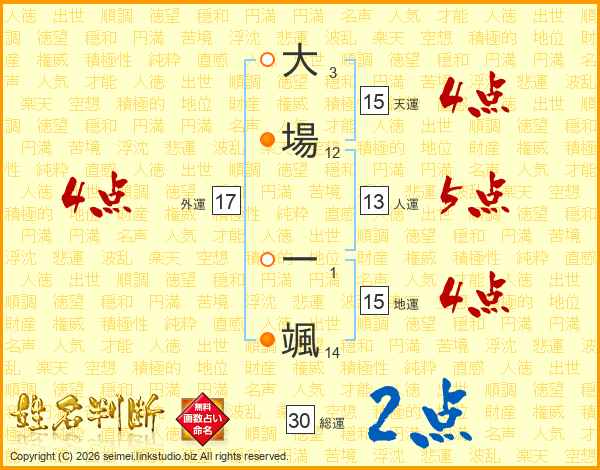大場一颯さんの天運は15画の4点!