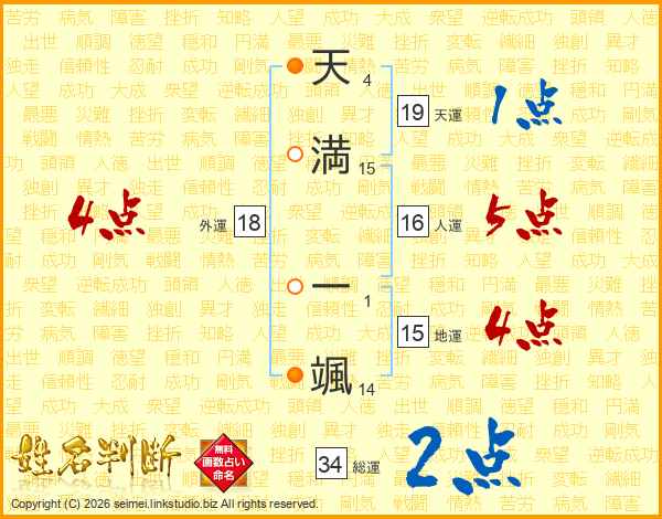 天満一颯さんの外運は18画の4点!