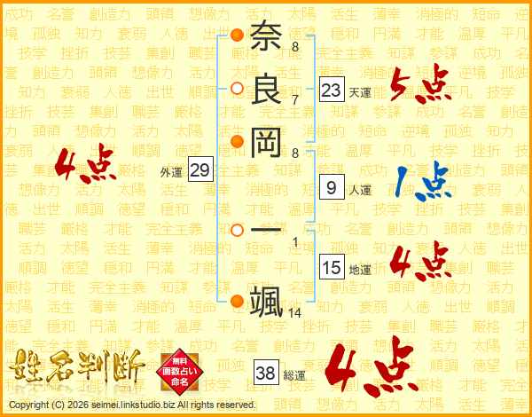 奈良岡一颯さんの総運は38画の4点!