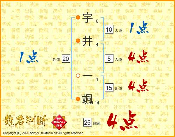 宇(6画)井(4画) 一(1画)颯(14画)