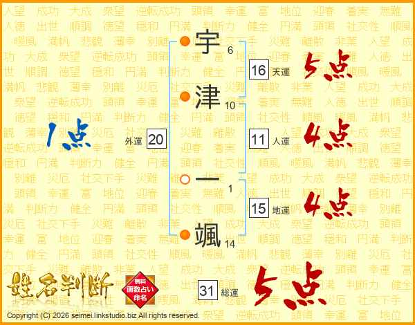 宇津一颯さんの総運は31画の5点!