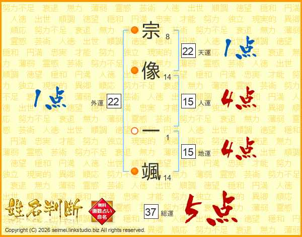 宗像一颯さんの総運は37画の5点!