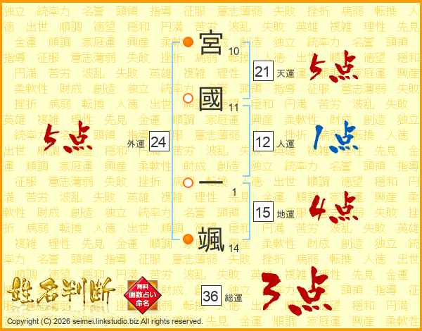 宮國一颯さんの外運は24画の5点!