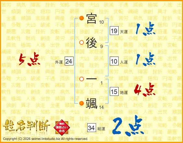 宮後一颯さんの外運は24画の5点!