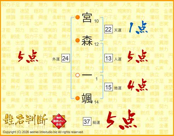 宮森一颯さんの総運は37画の5点!