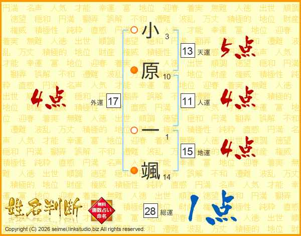 小原一颯さんの総運は28画の1点!