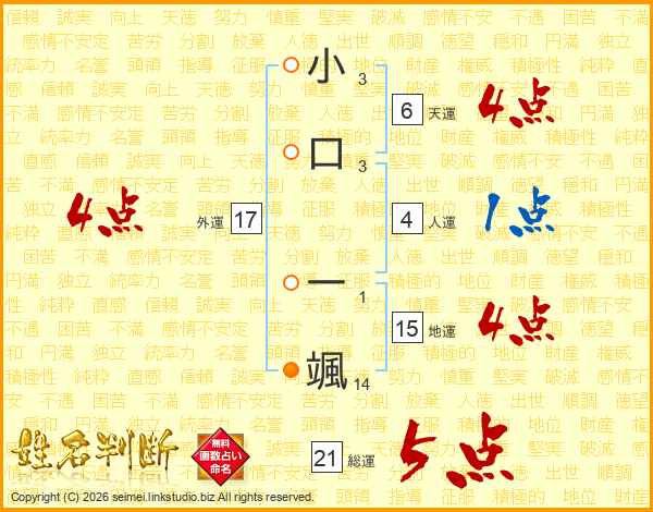 小口一颯さんの総運は21画の5点!