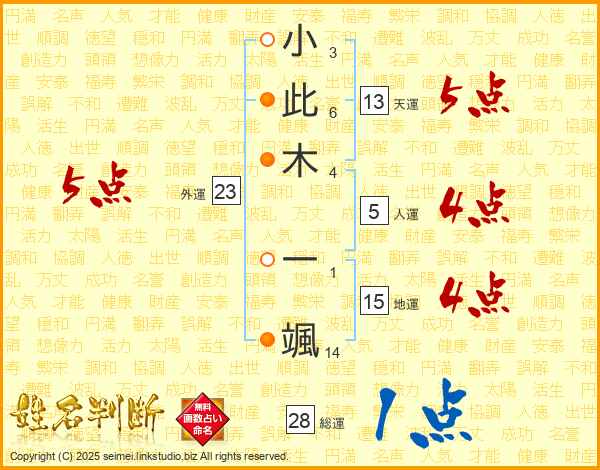 小(3画)此(6画)木(4画) 一(1画)颯(14画)