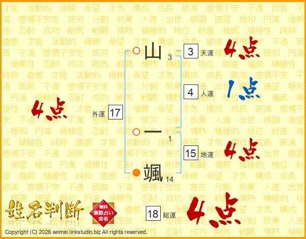 山一颯さんの総運は18画の4点!