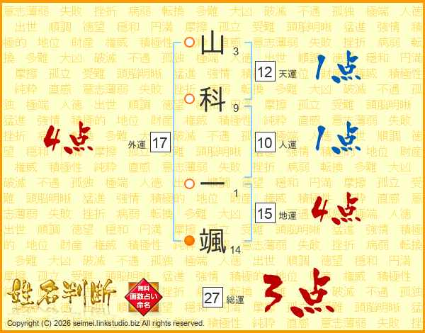 山科一颯さんの外運は17画の4点!