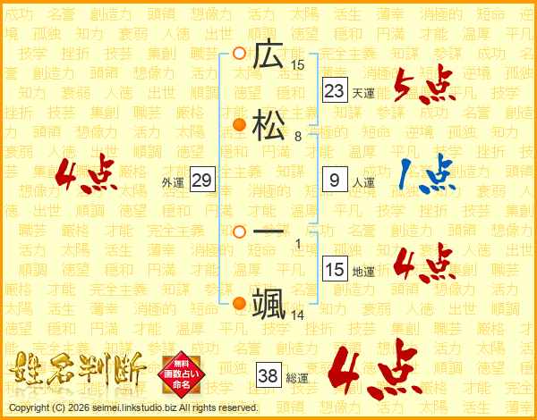 広松一颯さんの総運は38画の4点!