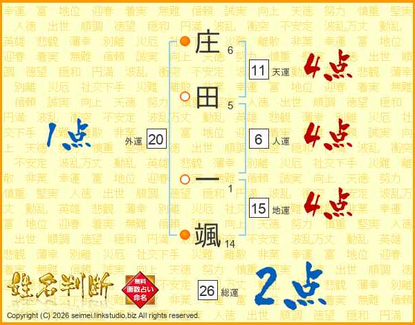 庄田一颯さんの天運は11画の4点!