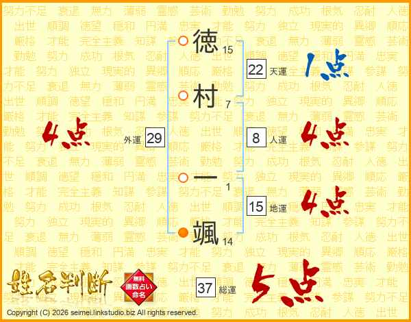 徳村一颯さんの総運は37画の5点!