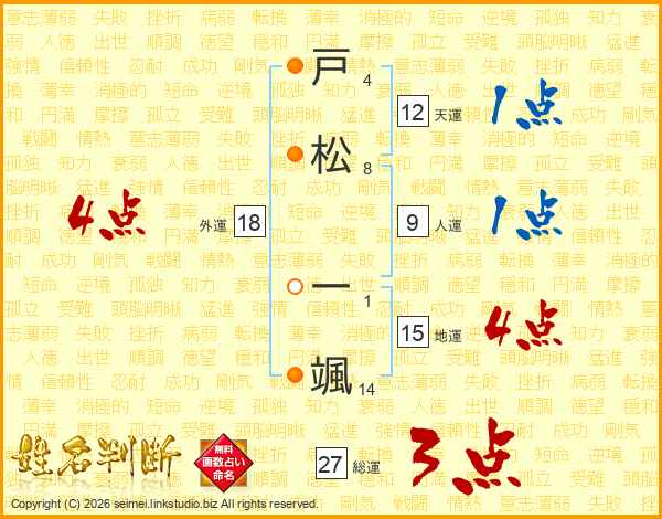 戸(4画)松(8画) 一(1画)颯(14画)