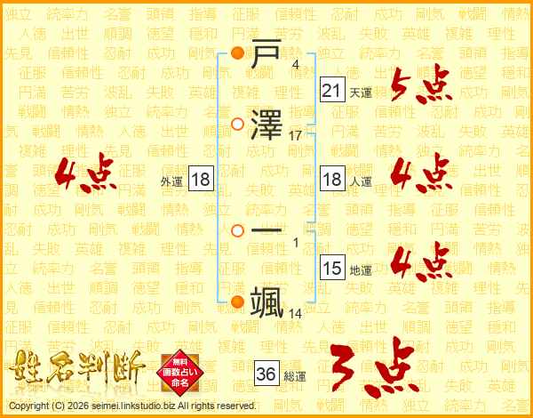 戸(4画)澤(17画) 一(1画)颯(14画)