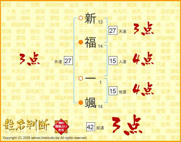 新福一颯さんの総運は42画の3点!