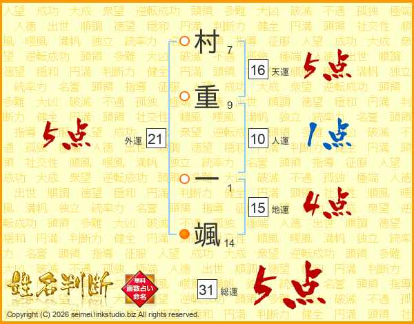 村重一颯さんの総運は31画の5点!