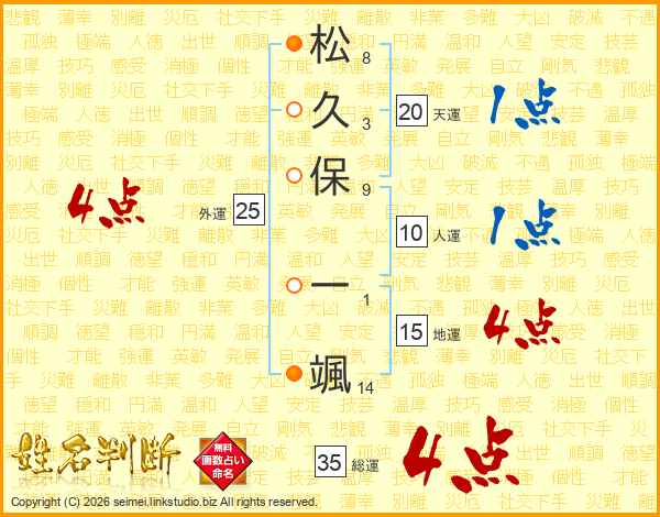 松(8画)久(3画)保(9画) 一(1画)颯(14画)