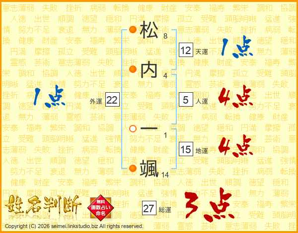 松内一颯さんの総運は27画の3点!