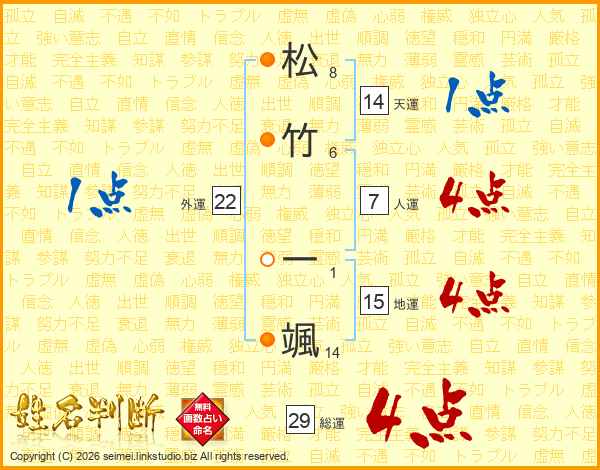 松竹一颯さんの総運は29画の4点!