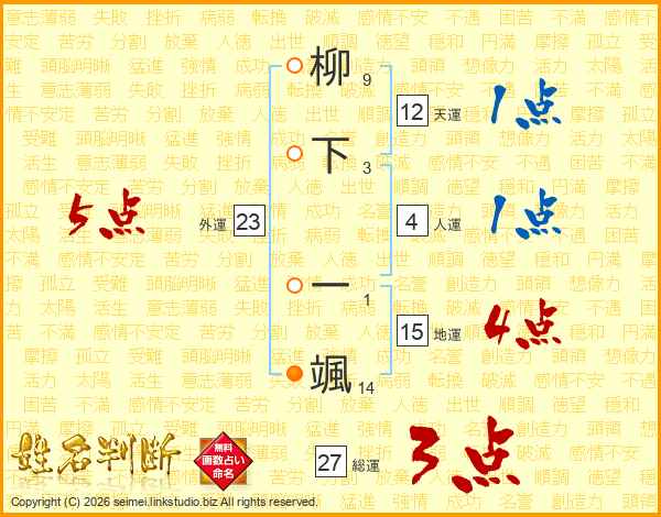柳下一颯さんの外運は23画の5点!