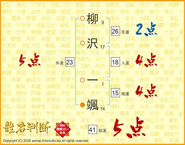 柳沢一颯さんの天運は26画の2点!