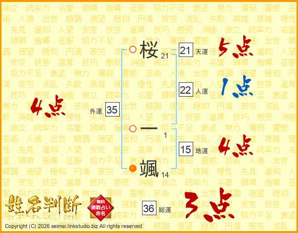 桜一颯さんの外運は35画の4点!