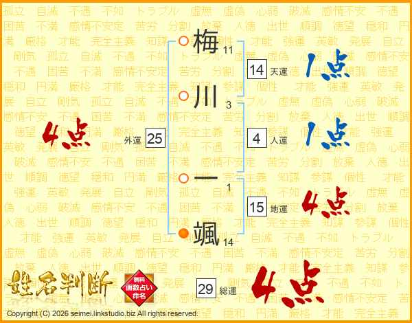 梅川一颯さんの総運は29画の4点!