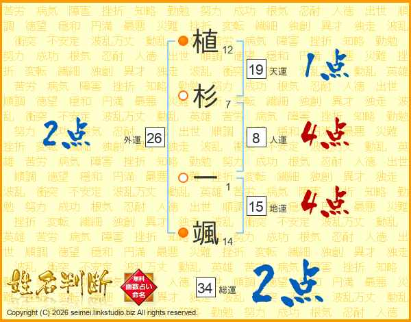植杉一颯さんの天運は19画の1点!
